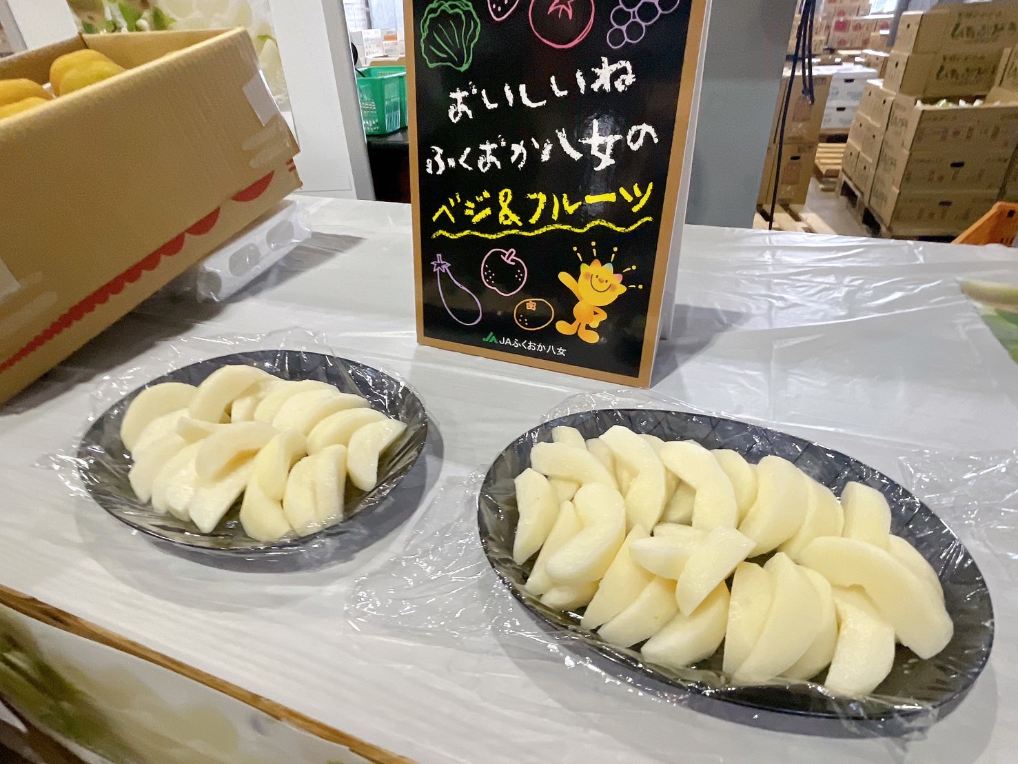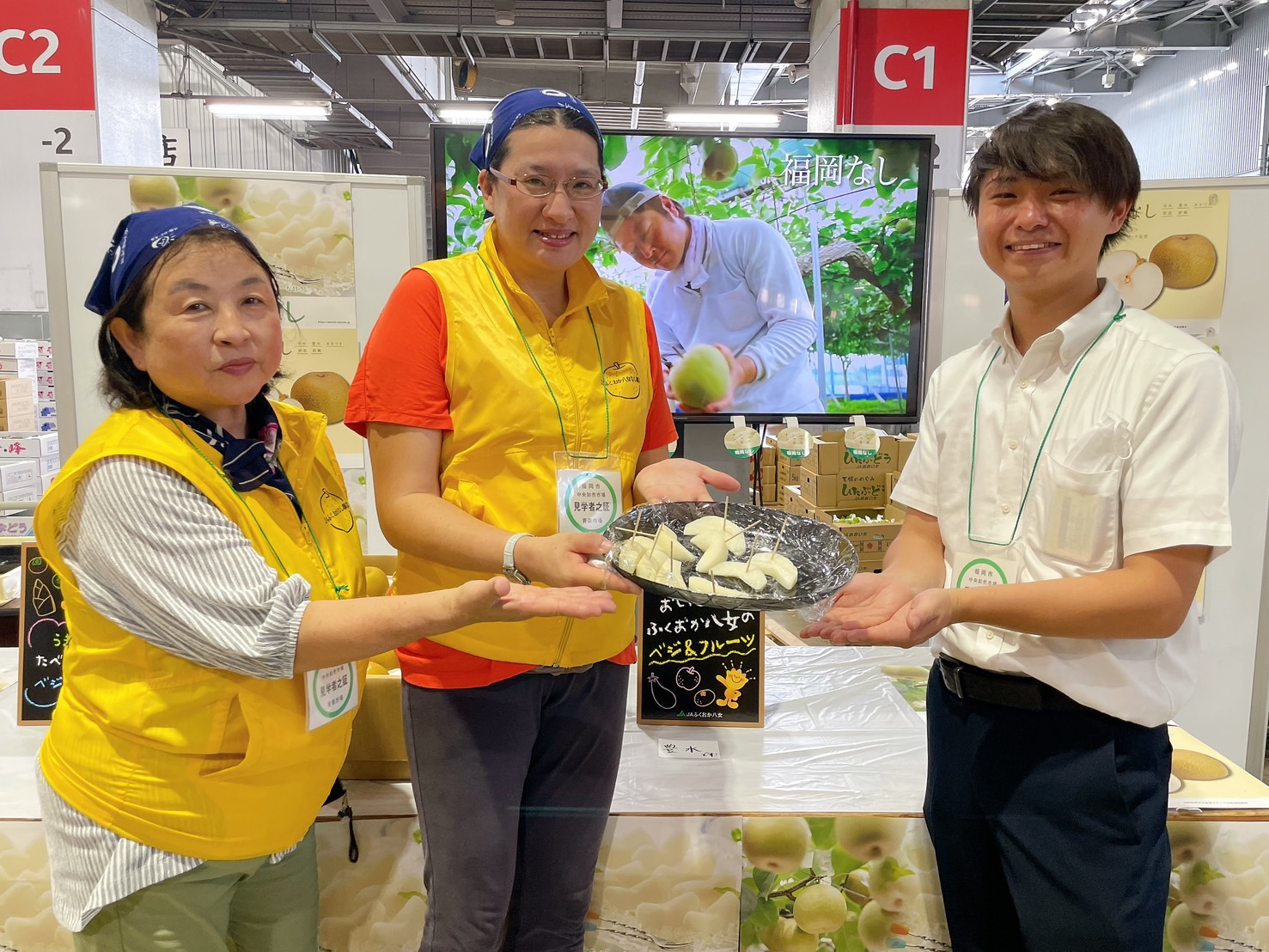 本日は、JAふくおか八女 梨部会の皆様にご来場いただき「豊水梨」の試食宣伝を行いました。