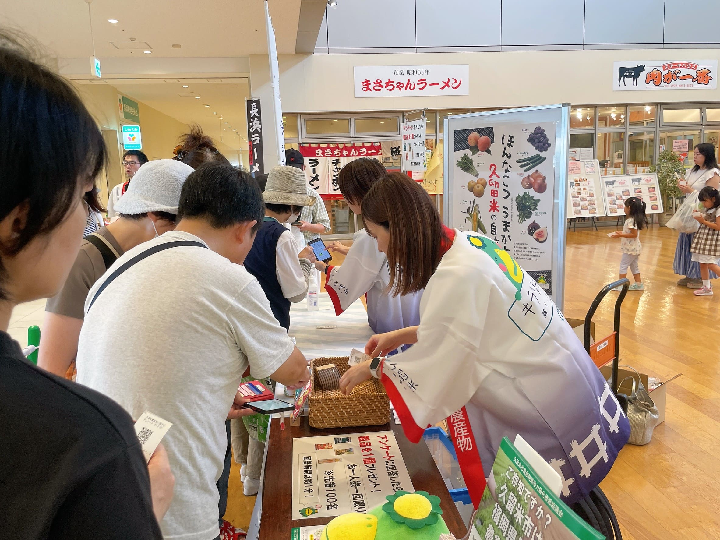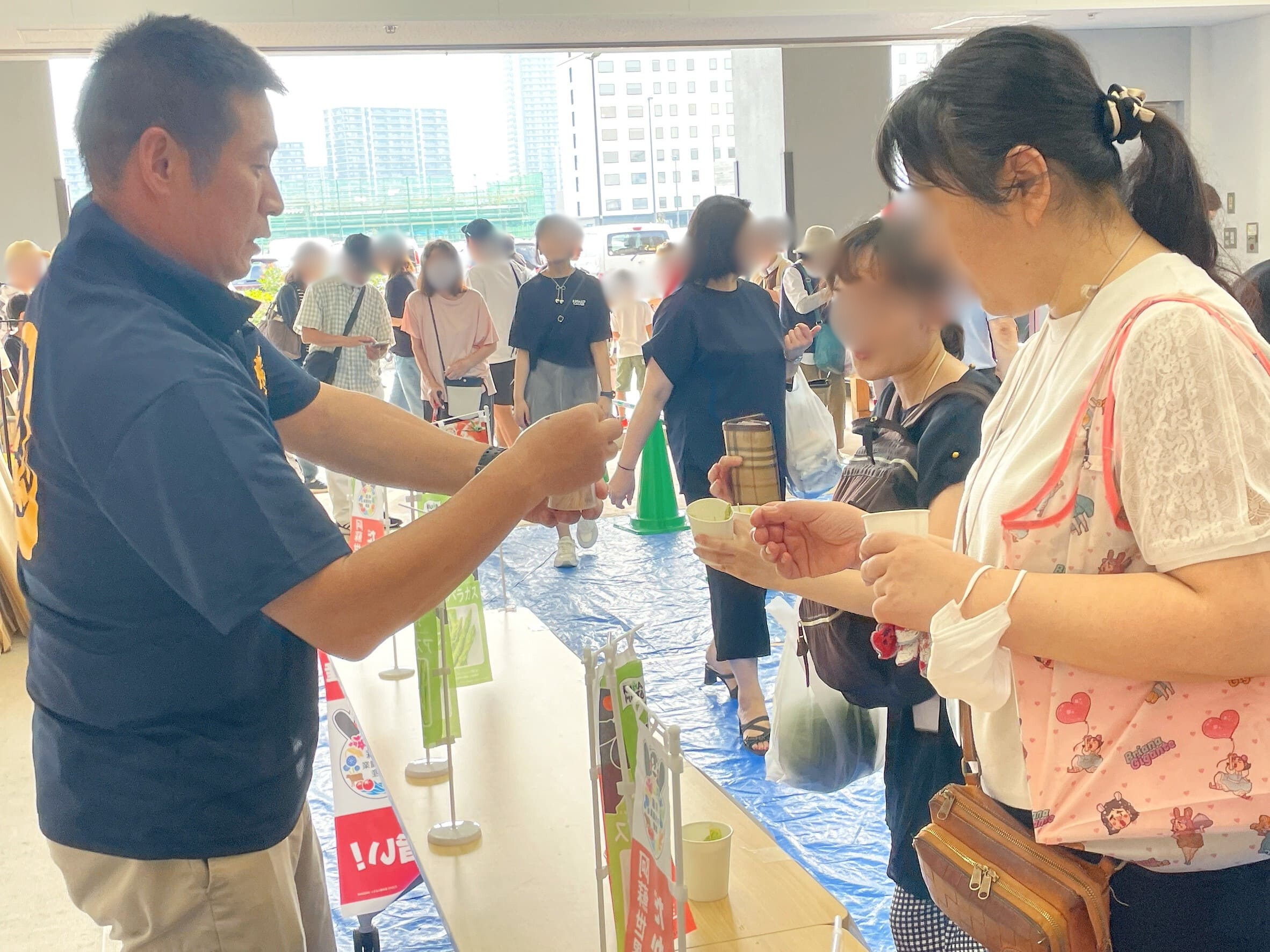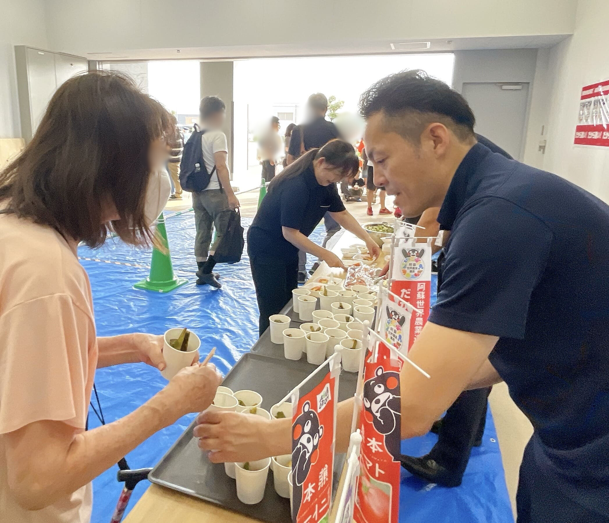 今月もJA阿蘇の皆様にお越しいただきました。今回は「アスパラガスの天ぷら」「夏野菜の南蛮漬け」など野菜たっぷりの試食が振舞われました。JA阿蘇は来月も出展予定です!