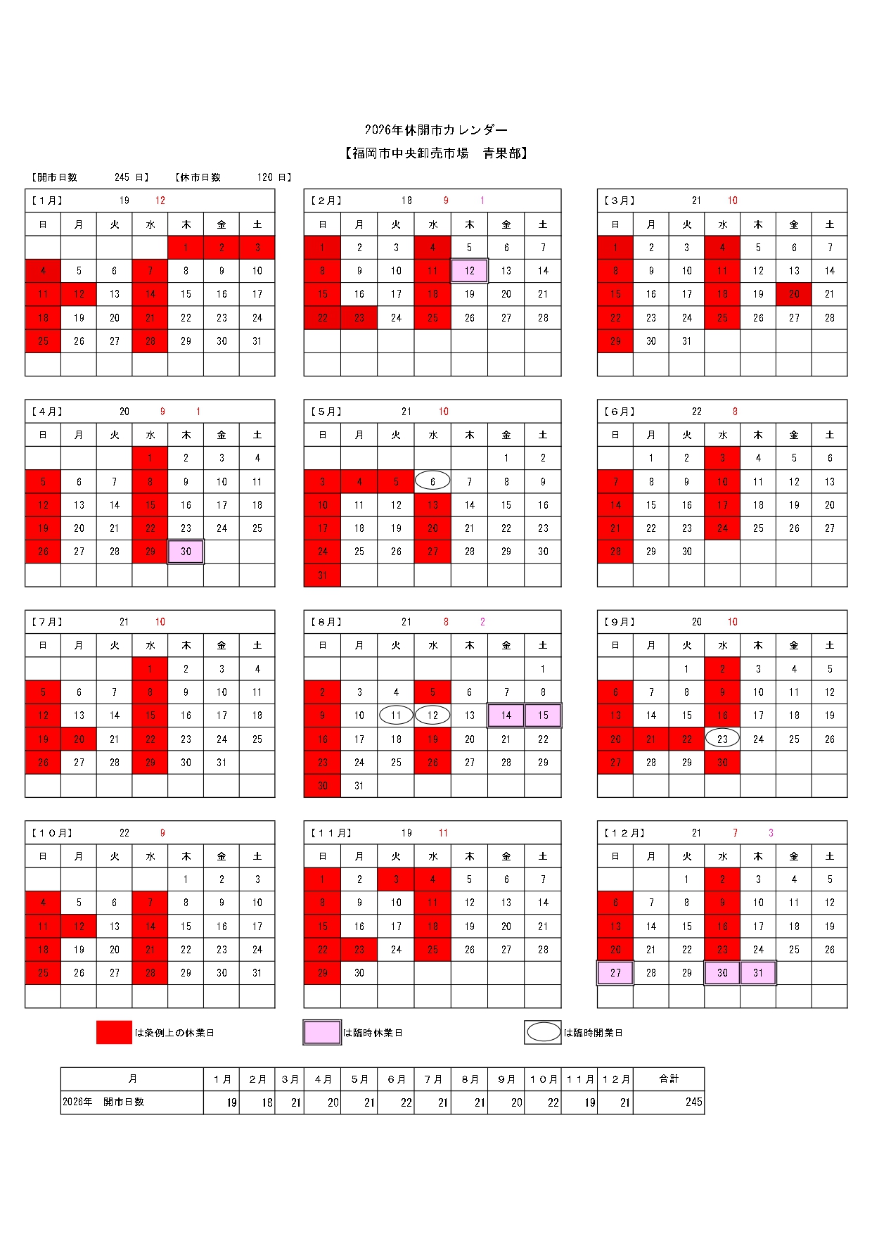 2026年の臨時休開場について下記の通り決定いたしましたのでお知らせいたします。