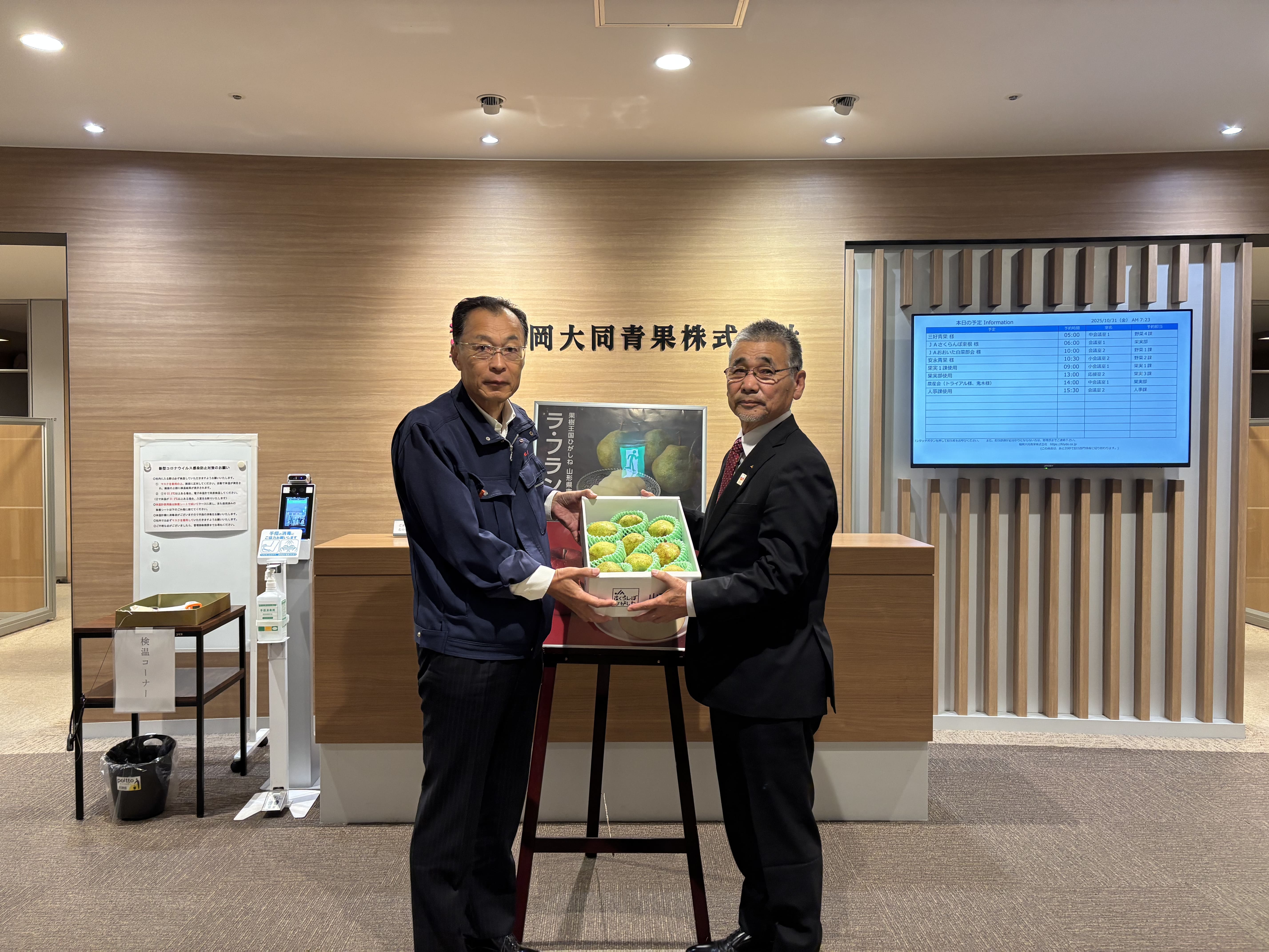 贈呈式では立派なラ・フランスをいただきました。JAさくらんぼひがしねの関係者の皆様、早朝からありがとうございました。