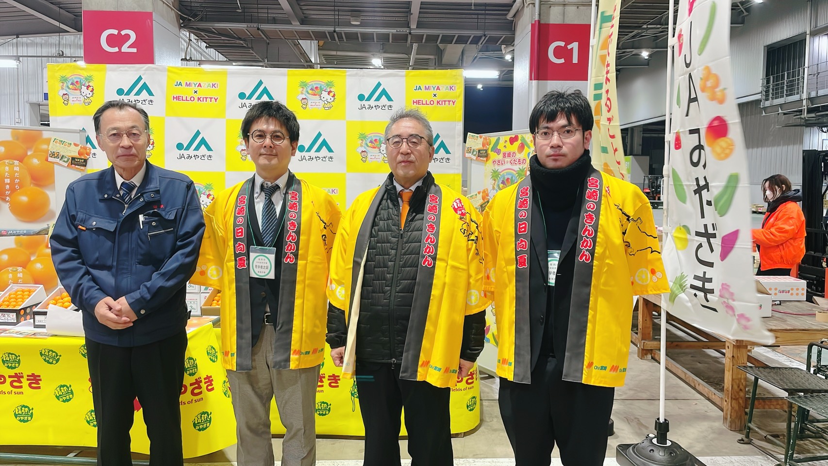 (写真:トップセールスの様子 [JAみやざき関係者の皆様と弊社 丸小野社長])