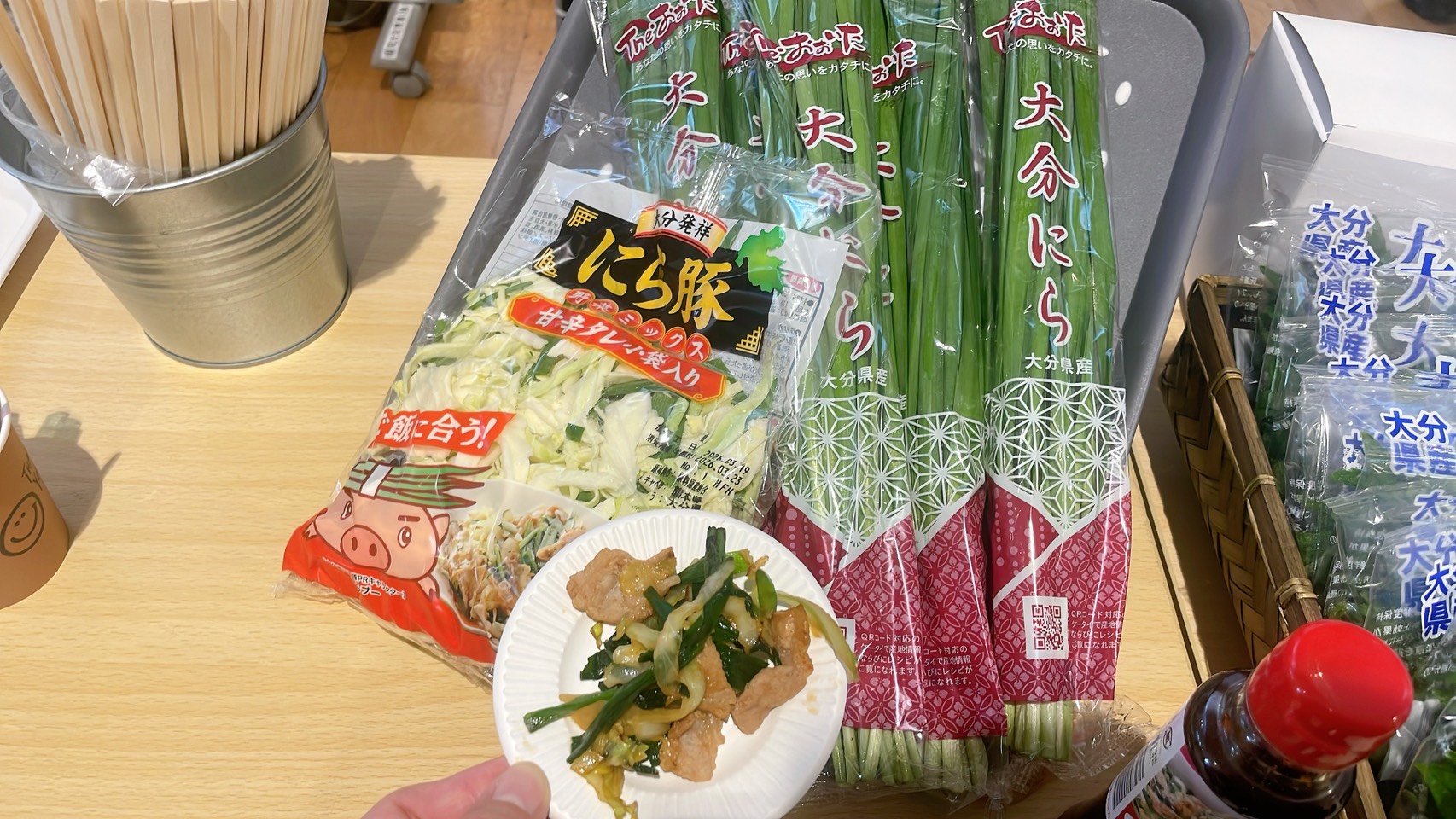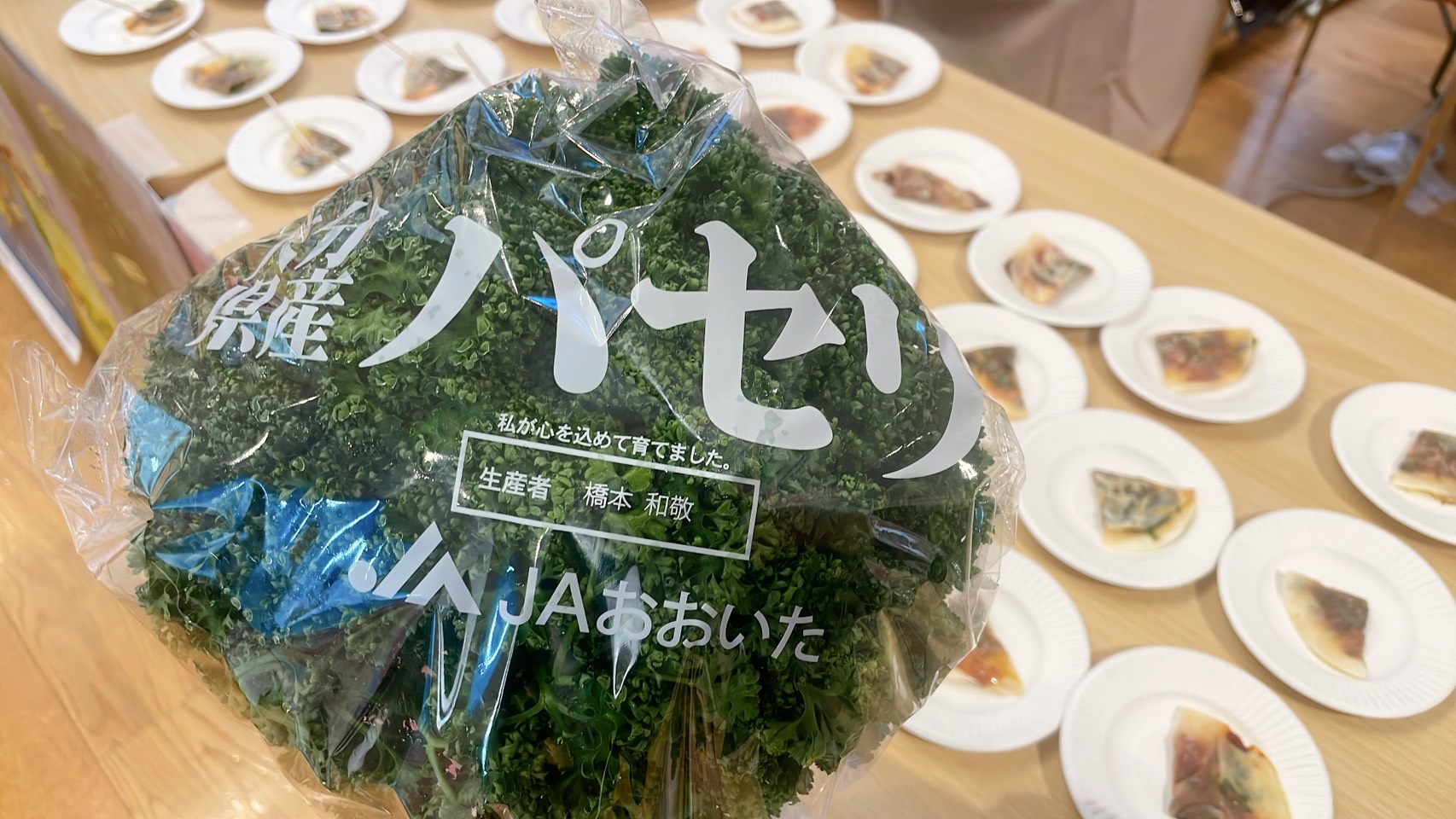 JAおおいたの周年野菜(大葉・にら・パセリ)各部会関係者による試食が振舞われました。