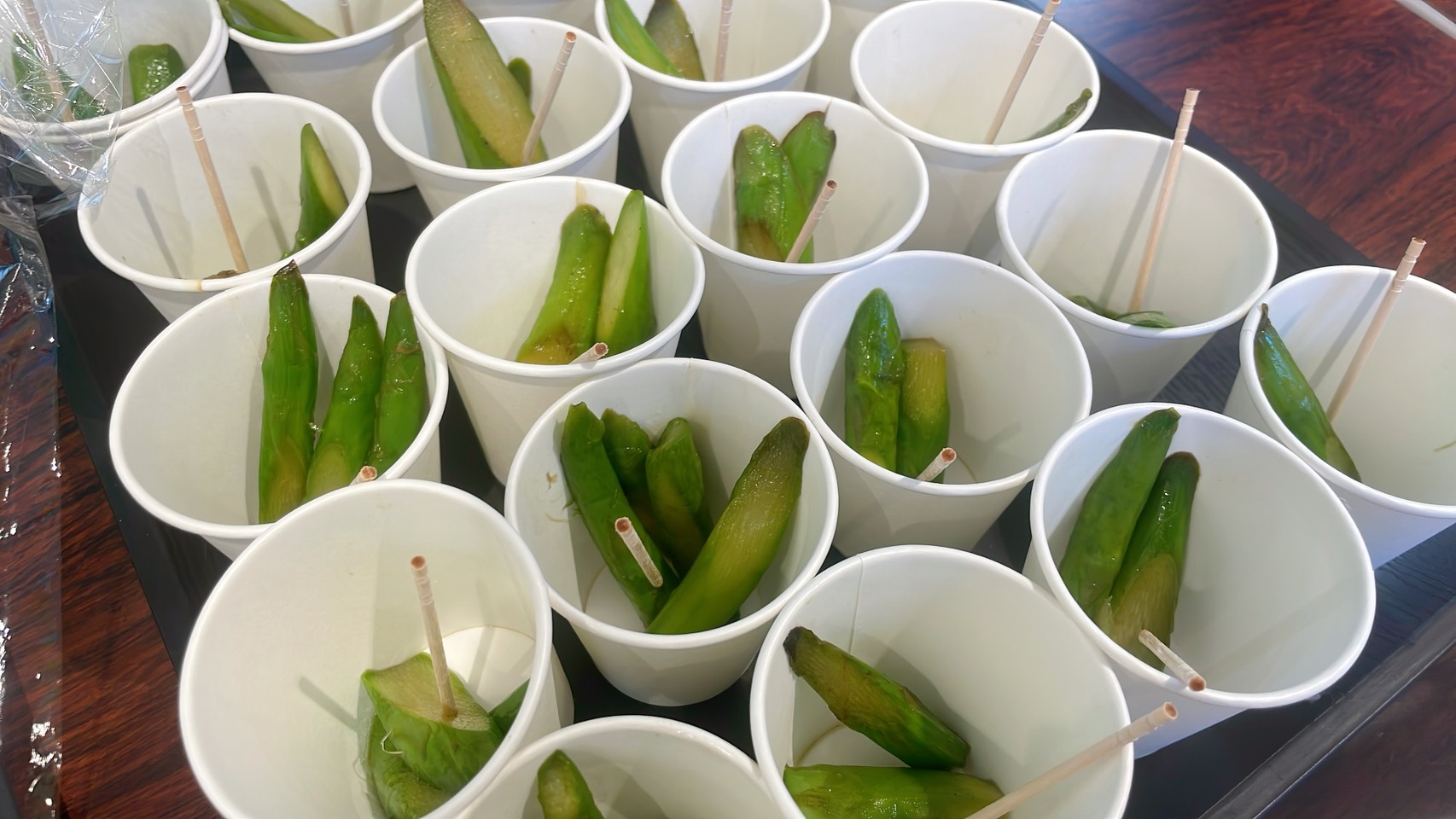 JA筑前あさくら産の野菜サラダの試食が振舞われました。紅たでが入ると全体がパッと華やかになりますね!お刺身にそっと添えられがちな紅たでですが、様々なお料理に使えるのです。