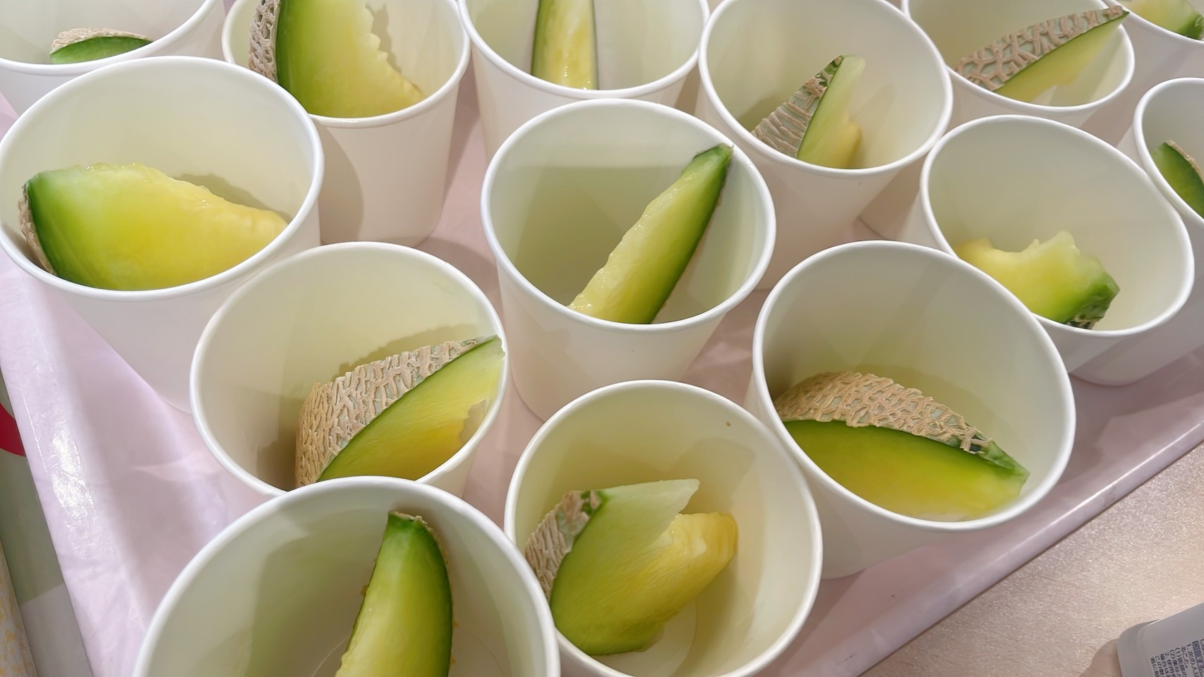 JA磐田支所 関係者の皆様にお越しいただき、静岡アローマメロンのPRをかねて試食が振舞われました。お客様からも甘いと好評で、あっという間に完売でした!