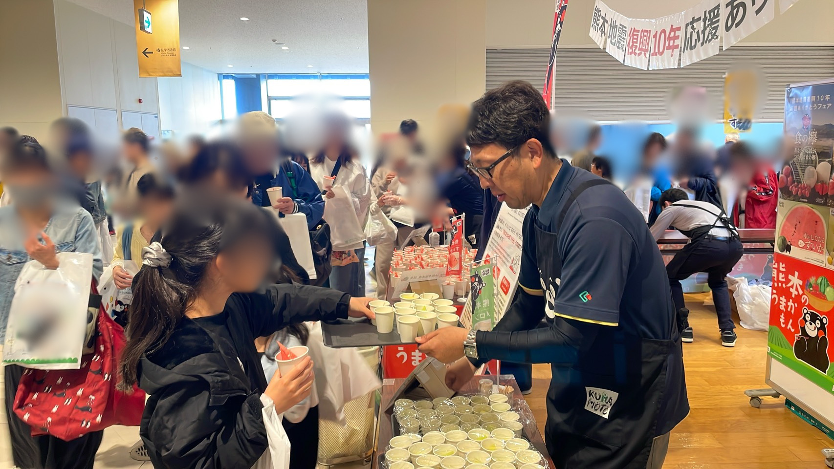 2016年4月14日に発生した熊本地震から早10年が経過しました。JA熊本経済連が応援ありがとうフェアと題して震災のパネル展示とノベルティの配布、そしてスイカとメロンの試食を行いました。