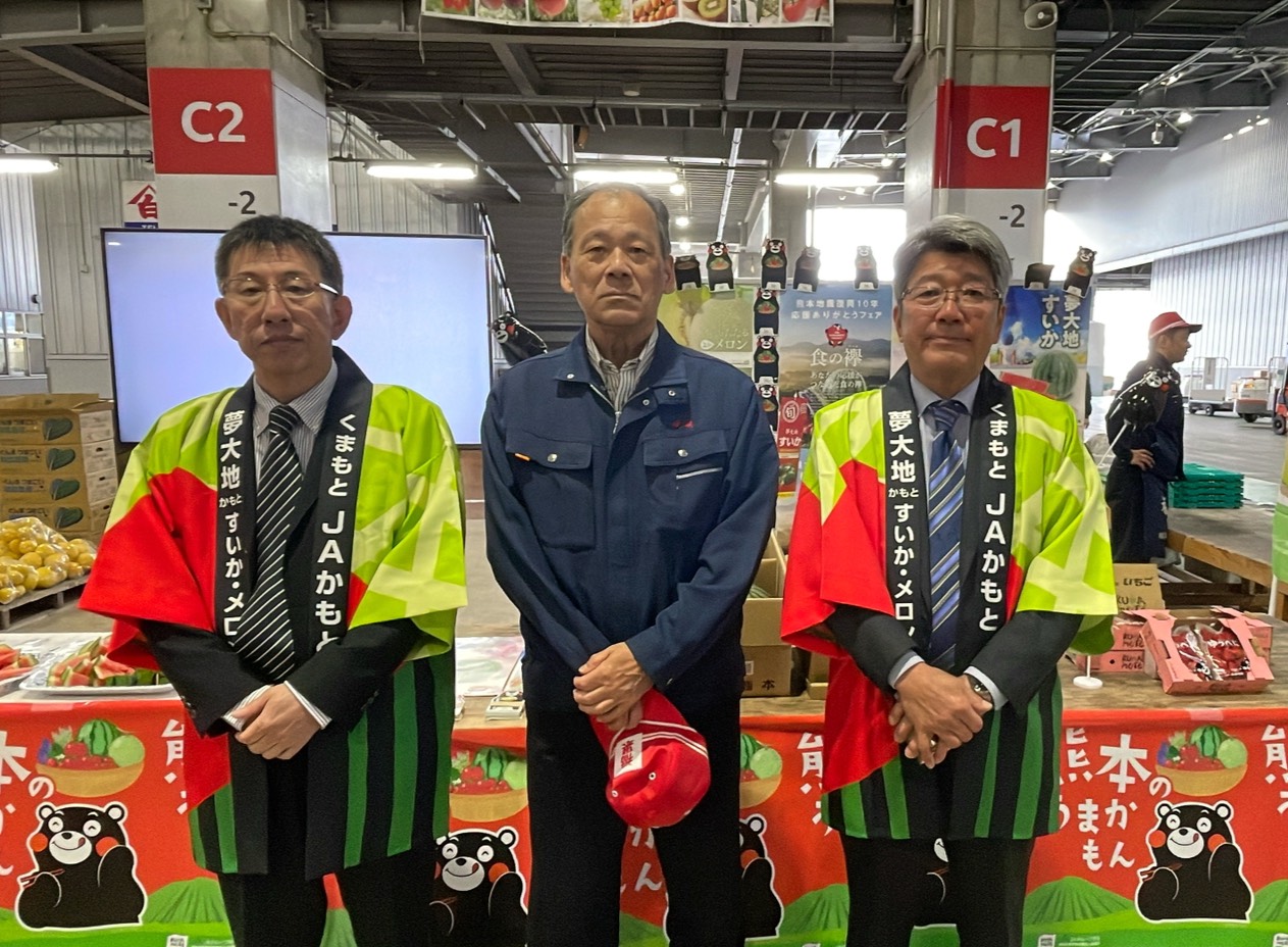 (写真左より:JAかもと 浦田課長、当社手嶋副社長、JAかもと 古川副組合長)