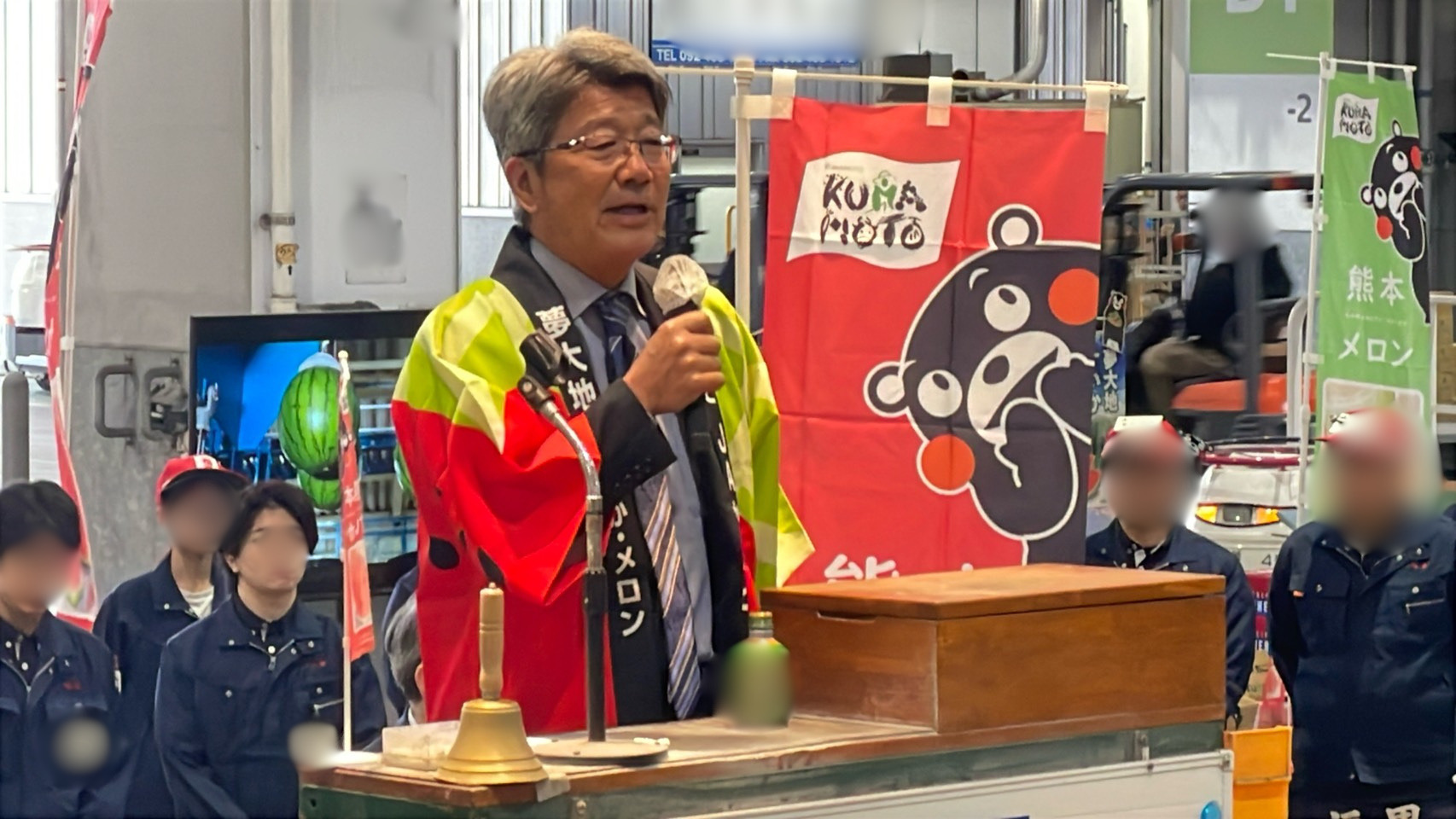 「日頃よりJAかもとの青果物をお取り扱いいただきありがとうございます。熊本は全国でも上位を誇る西瓜の産地ですが、なかでもJAかもとの西瓜は3月から6月にかけて出回り、まさに今が最盛期です。生産者が一生懸命作った西瓜を是非ご賞味ください。今後ともJAかもとの青果物をよろしくお願いいたします。」